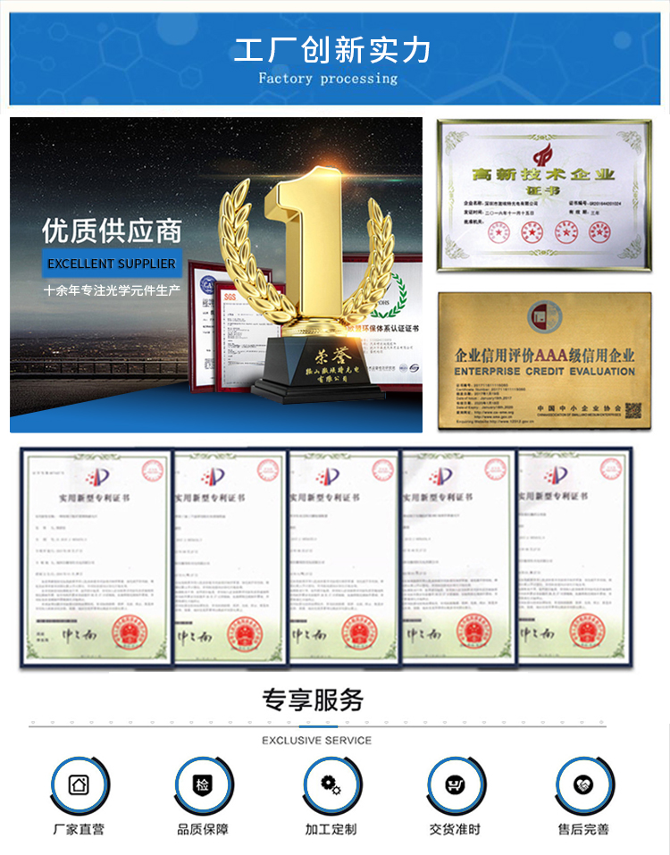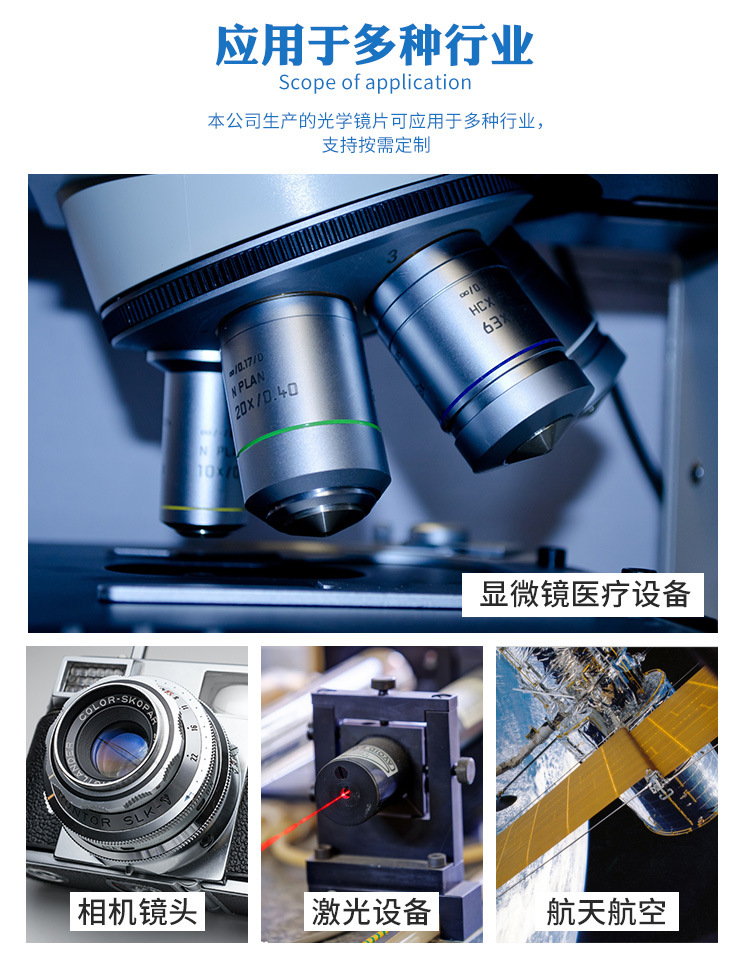 VR虛擬現(xiàn)實、照相機、放大鏡、投影儀、光學(xué)成像、天文觀測、科學(xué)研究、軍事工業(yè)、手機外置鏡頭、攝影鏡頭、遠心鏡頭、紅外鏡頭、準直鏡頭、軍工鏡頭等高端鏡頭 。